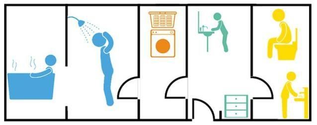 衛生間,如何在一個有限的空間,放下馬桶、浴缸、臺盆,還要做到干濕分離,整潔,使用方便,采用通風都得好,這對衛生間的空間布置就提出了更高的要求。