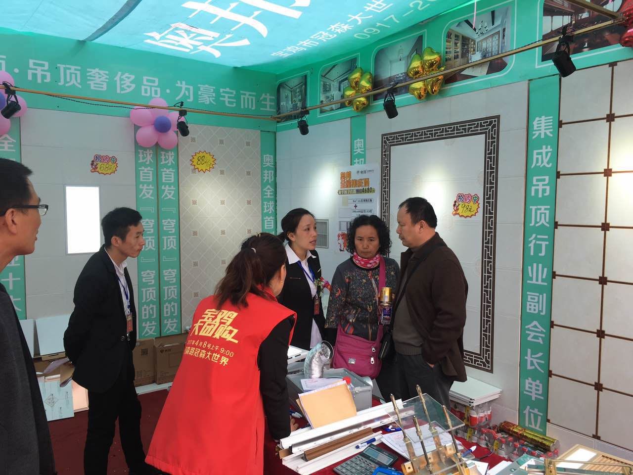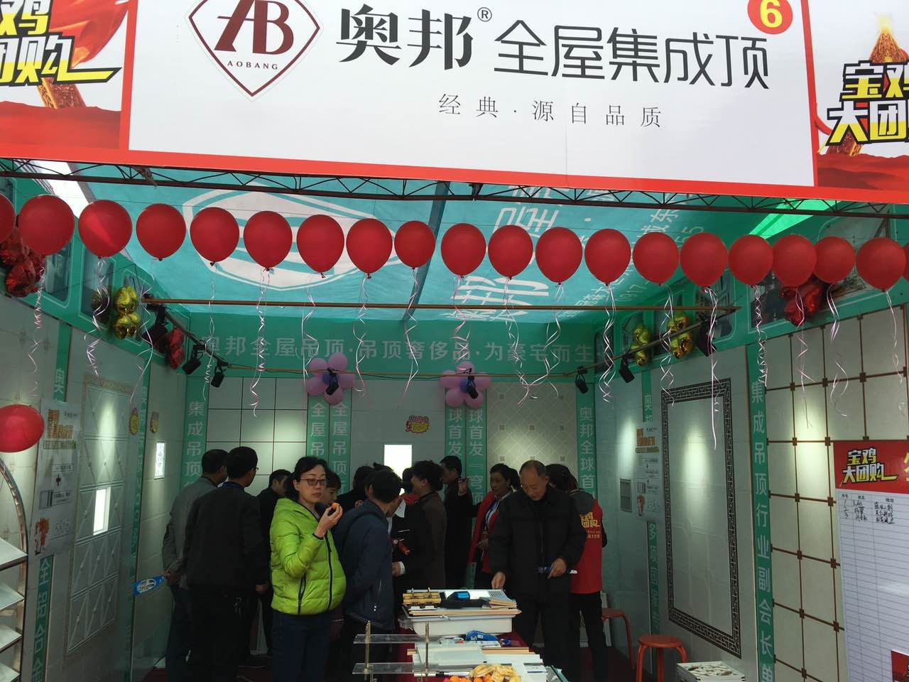 2017年4月8日,奧邦全屋集成頂與諸多家國內一線家裝建材品牌,攜手參加了在寶雞客運中心廣場舉辦的寶雞大團購活動,旨在給寶雞市民打造高端建材家裝采購的全方位購物平臺