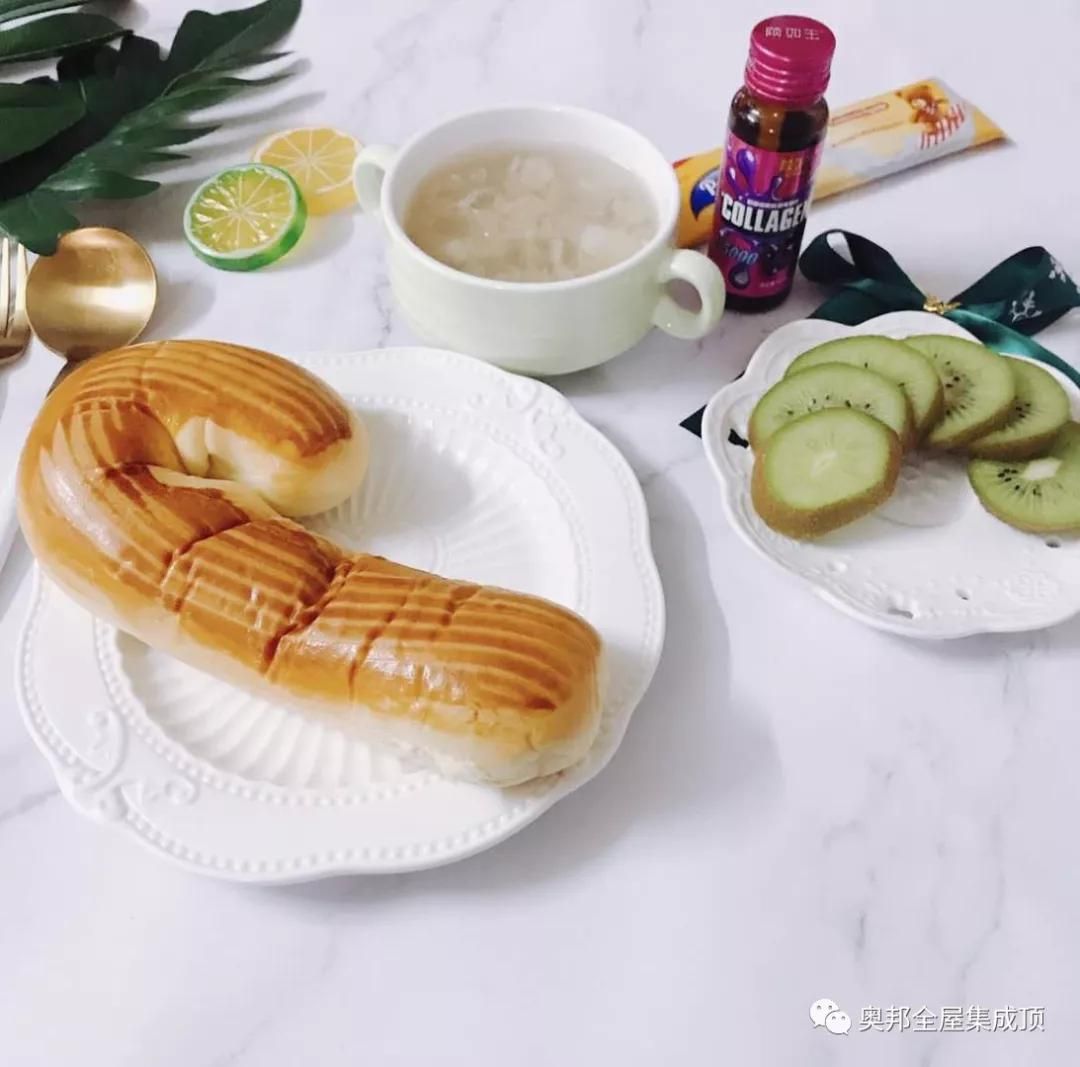一日之計在于晨的早餐——水果、堅果,牛奶,中西合璧,營養搭配。