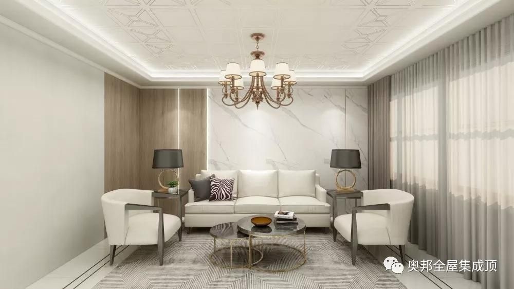 現代簡約風客廳是以簡約為主的裝修風格,也是我們生活中最普遍的設計風格,將設計的元素、色彩、照明、原材料簡化到最少的程度。空間設計通常非常含蓄,往往能達到以少勝多、以簡勝繁的效果。奧邦鋁墻面作沙發背景墻,安裝方便、綠色環保、搭配自由。