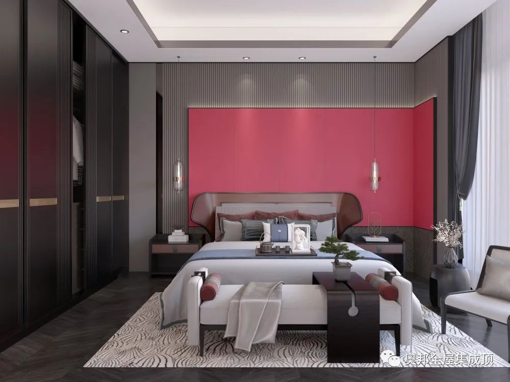 新中式風格的打造,初看平淡簡潔,不覺出奇;細品質感非凡,色彩的精妙混搭意境猶長。最是驚艷那一抹中國紅,演繹出意猶未盡的東方情韻。